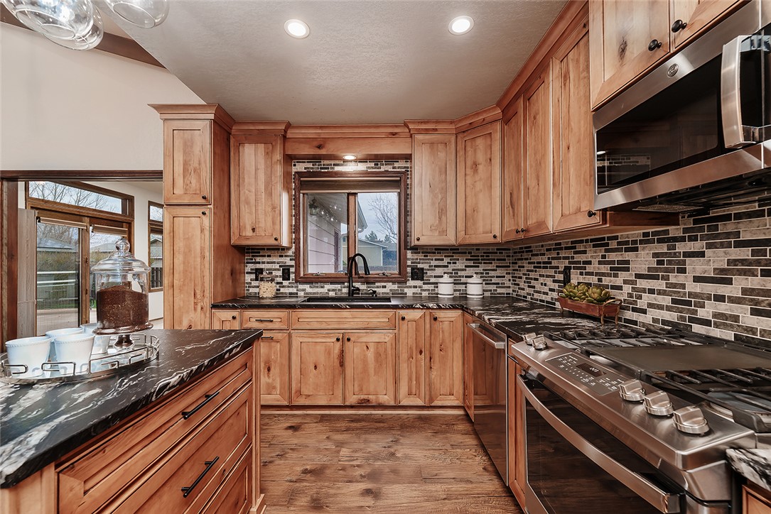 3 Bed, 2 Bath, 1917 Ft Tri Level Home Offers Comfort, Style, & Function In A Desirable West End Location. Remodeled Kitchen Is A Standout W/rich Soft Close Hickory Cabinetry, Solid Surface Counters, Center Island & Gas Range. Bonus Room Just Off The Kitchen/dining Area Has Patio Door Opening Onto A Spacious Deck Overlooking The Fenced Backyard This Layout Is Perfect For Cooking, Entertaining & Outdoor Living. The LR Welcomes You W/vaulted Ceilings, Wood Stove, & Ceiling Fan, Creating A Warm & Airy Space. The Master Bedroom Includes Double Closets, Recessed Lighting & Doors To Balcony That Connects To The Lower Deck. The 2nd Bedroom & Updated Full Bath W/tile Surround Shower & Solid Surface Vanity Complete The Upper Level. The Daylight Lower Level Provides A Family Room, Bedroom, Bathroom And Laundry Closet. Double Attached Garage Plus Carport With Enclosed Storage Space Off The Alley.