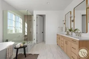 The Primary Suite Features A Soaking Tub, A Tiled Shower, And A Spacious Walk In Closet.