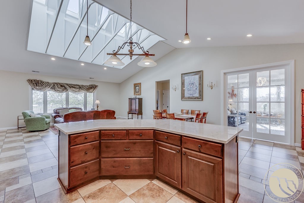 The Seller Loved The Stone Counters, Open Living Spaces, Natural Light From Skylights, Bonus Rooms, And A Large Garage. Sunlight Pours Through New Pella Skylights, Windows, And Doors, Brightening Every Room. The Main Floor Flows From A Spacious Kitchen With Stone Counters, Island, And Pantry Into A Living Area Ideal For Hosting Or Relaxing. The Great Room Offers Vaulted Ceilings And A Valor Gas Stove, With Floor To Ceiling Doors And Windows Showcasing Sunrise And Sunset Views And Leading To A Walk Out Patio. Upstairs, A Loft Fits A Queen Bed, With Bonus Rooms, Walk In Closet, And Bath With Easy Access Shower. The Oversized Three Bay Garage Fits Five Vehicles And Has A Temperature Controlled Shop. Outdoors, Enjoy A Fenced Yard, Gazebo, Two Patios, A Fire Pit, And Low Maintenance Landscaping Designed For Entertaining And Enjoying Quiet Moments. Info Deemed Reliable But Not Guaranteed. Buyer/agent To Verify.